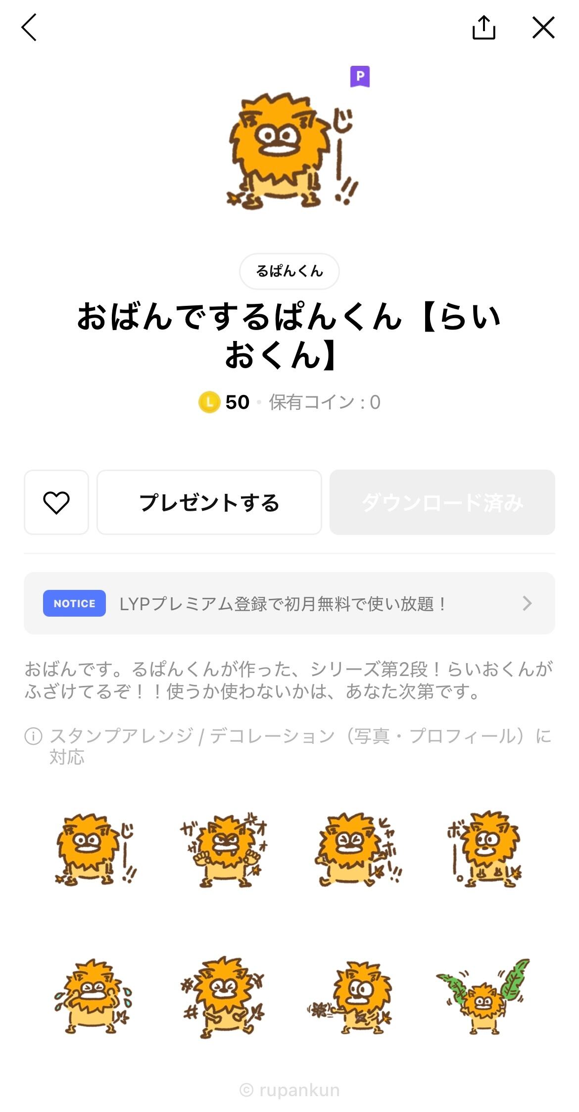 自分だけのLINEスタンプをるぱんくんのイラストで作成します。個数によって、料金が多少変動致します。